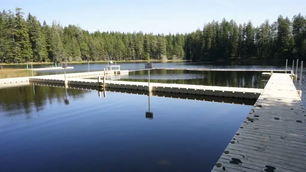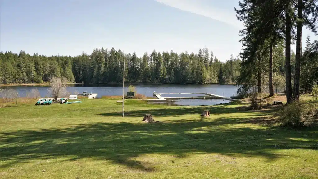 This private facility is on 500 acres of forested property ten miles west of Shelton, Washington. A basketball court is available as well as a group BBQ hut. There is a large lawn and multiple docks for fishing. A hiking trail allows for exploring the forested shore area of the lake when accompanied by a Ghillie.